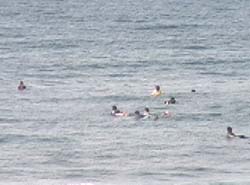 ビーチに面したところで飯を食べるのだが、 手前のビーチには大きな白波が・・・。 波小さいって昨日アレフ言ってたよな・・・。 ←なんだか急にビビってきた・・・photo by zz |
