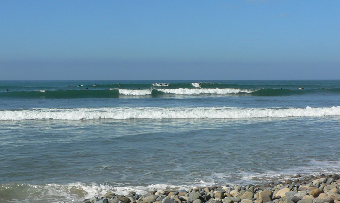 | さぁいよいよ3日目になりました。本日はさくっとコンビニで朝飯を買出しして急いで出発。 本日はTrestle'sにいくとのことなので、朝から興奮状態。 が、早朝到着すると、もうそこにはドエライ人々・・・・。これじゃ波とれないだろうな・・・。 と、急遽、SanOnofre THE POINTでやることに。 サイズは結構あってセッツは頭くらいあるんだが、なんともロングのおんつぁま達がウヨウヨすごくて、乗れまへん。 やっぱ一旦あがって、Churchまで行くかなぁ〜と思ってると、乗れたりして。。 なんだかウダウダ過ごしました。 |