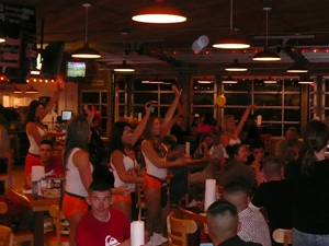 ![]() 本日の夕飯は、おまたせしましたHooter's!! アメリカンなおっぺーに興味津々な我々男性陣のメインイベントです♪ またまたエビや牡蠣などの魚介系に加え、チキンてんこもりOrder。 |